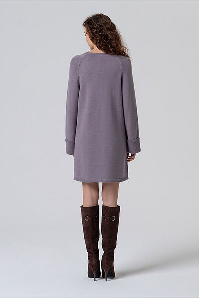 Vestido corto de punto elástico con escote en pico y silueta oversize. Suave, ligero y comodísimo, es una de esas prendas que te resuelven el look con estilo. Las mangas amplias y los acabados acanalados refuerzan su aire relajado y contemporáneo.