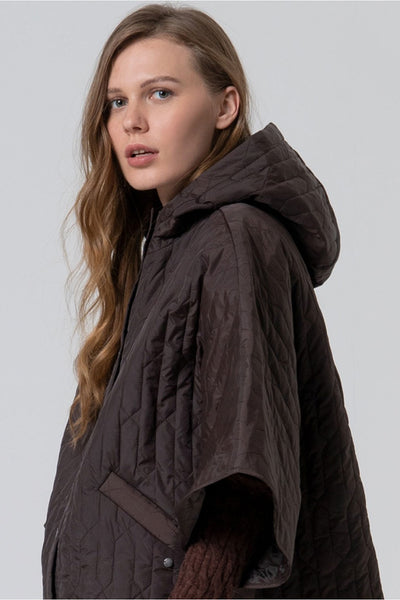 Capa acolchada fina con mangas, bolsillos y cierre clips, con capucha.