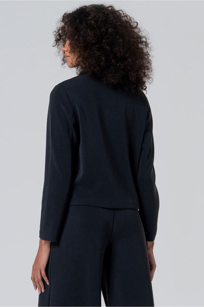 Chaqueta corta confeccionada en modal grueso, un tejido extra elástico y suave. Con cuello clásico y bolsillos delanteros, combina estructura y confort en una prenda versátil que se adapta con estilo al ritmo diario.